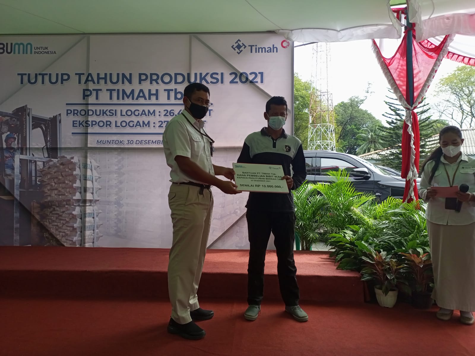Bantuan bibit lele kepada Paguyuban Berkah Tani diserahkan oleh General Manager PT Timah Tbk Wilayah Bangka Belitung Robertus Bambang Susilo, di Unit Metalurgi Jumat (30/12/2021) lalu.