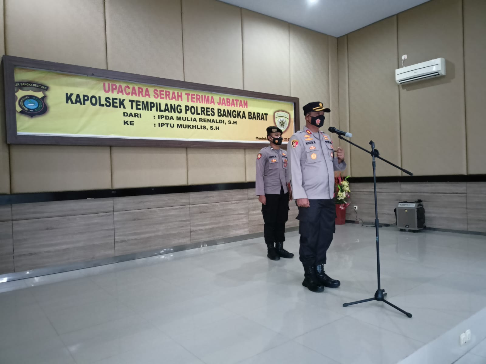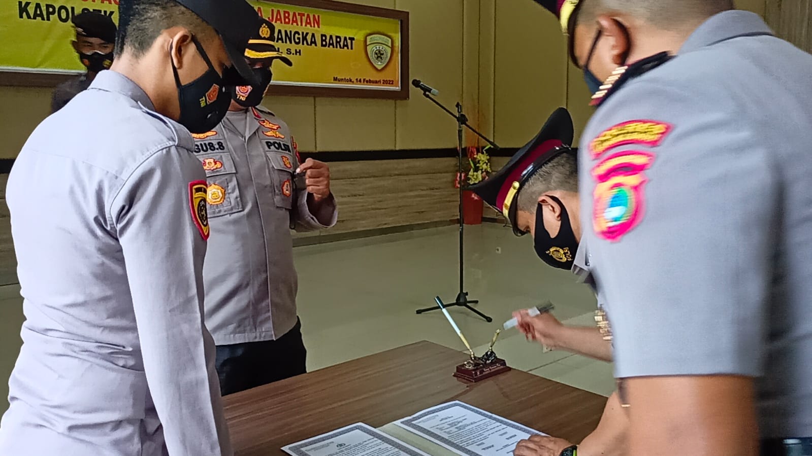 Serah Terima Jabatan (Sertijab) Kapolsek Tempulang. yang digelar di Gedung Catur Prasetya Mako Polres Bangka Barat, Senin (14/02/2022).
