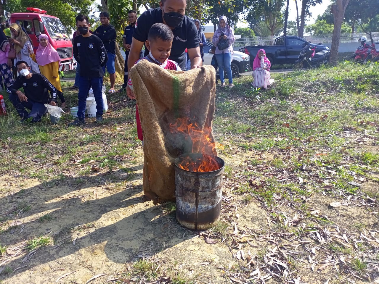 “Berani dengan api. Tidak takut, dipadam dengan karung diisi air,” jelasnya.