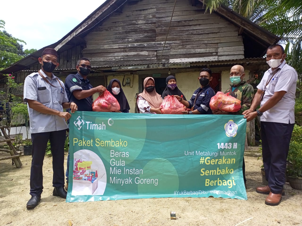 BANGKA BARAT — PT Timah Tbk menyerahkan ratusan paket sembako bagi masyarakat di Kecamatan Muntok, Kabupaten Bangka Barat, Selasa (12/4/2022).