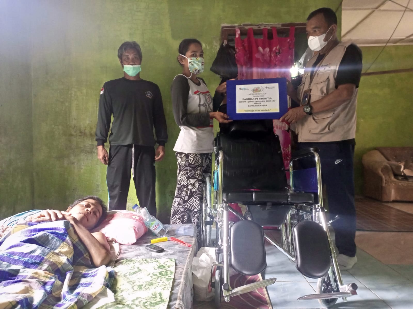 “Terima kasih kepada PT Timah atas bantuan kursi roda, kalau sudah sehat ingin segera menggunakannya,” ucapnya sambil mengusap air mata.