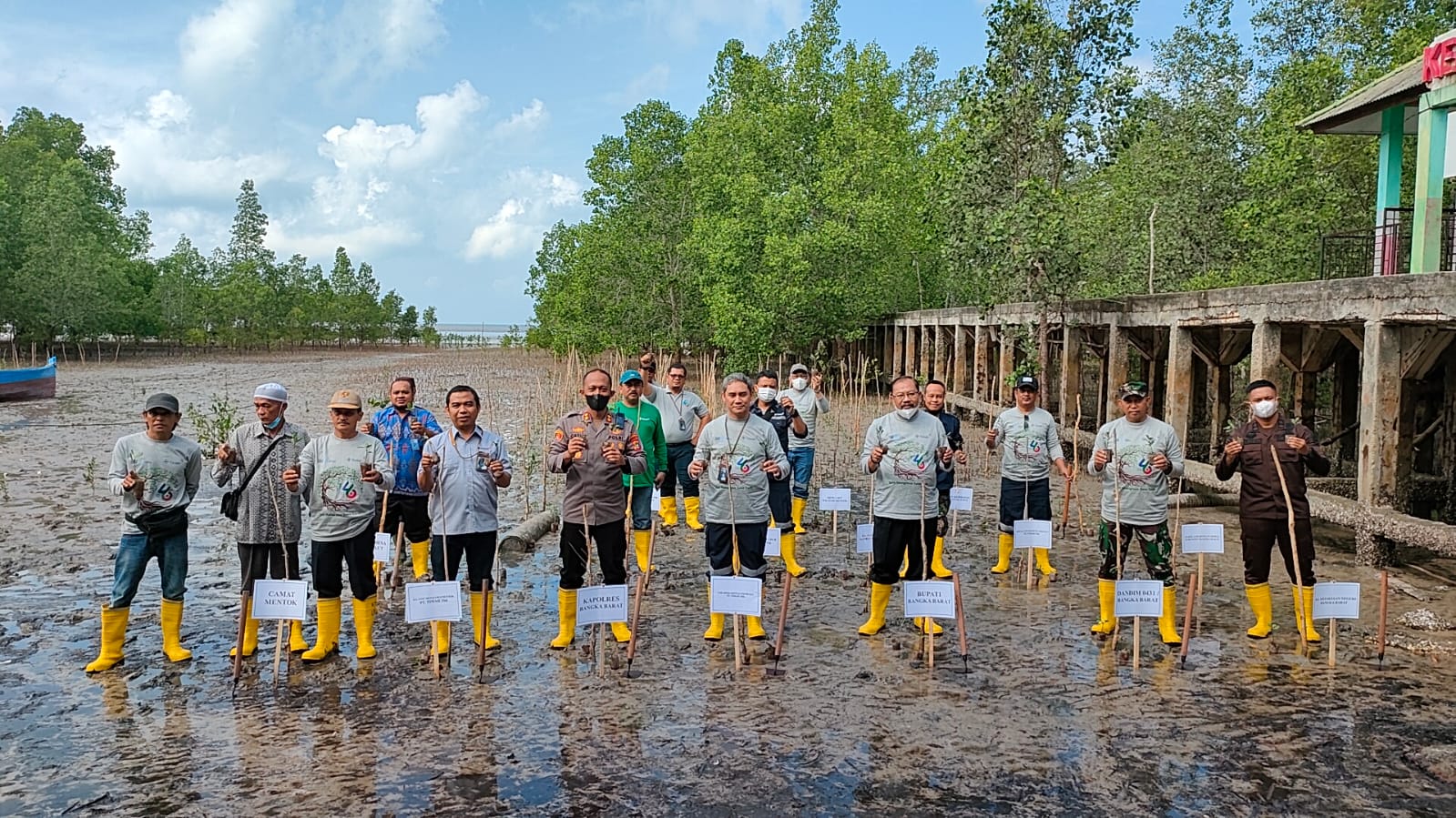 PT Timah Tbk melakukan penanaman mangrove di Kawasan Pantai Belo Laut, Kecamatan Muntok sebanyak 4600 bibit. Sedangkan untuk pelestarian lingkungan laut, PT Timah Tbk menenggelamkan 46 unit rumpon di Perairan Belo Laut, Kamis (28/7/2022).
