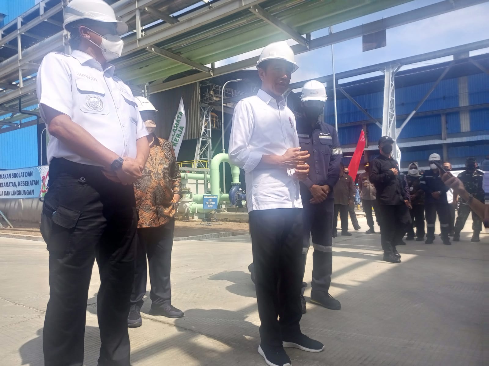 Presiden didampingi Direktur Utama PT Timah Tbk, Achmad Ardianto, Direktur Operasi dan Produksi PT Timah Tbk Purwoko, Pj Gubernur Bangka Belitung Ridwan Djamaluddin meninjau proyek pembangunan (TSL) Ausmelt Furnace dan gudang balok timah PT TIMAH Tbk.
