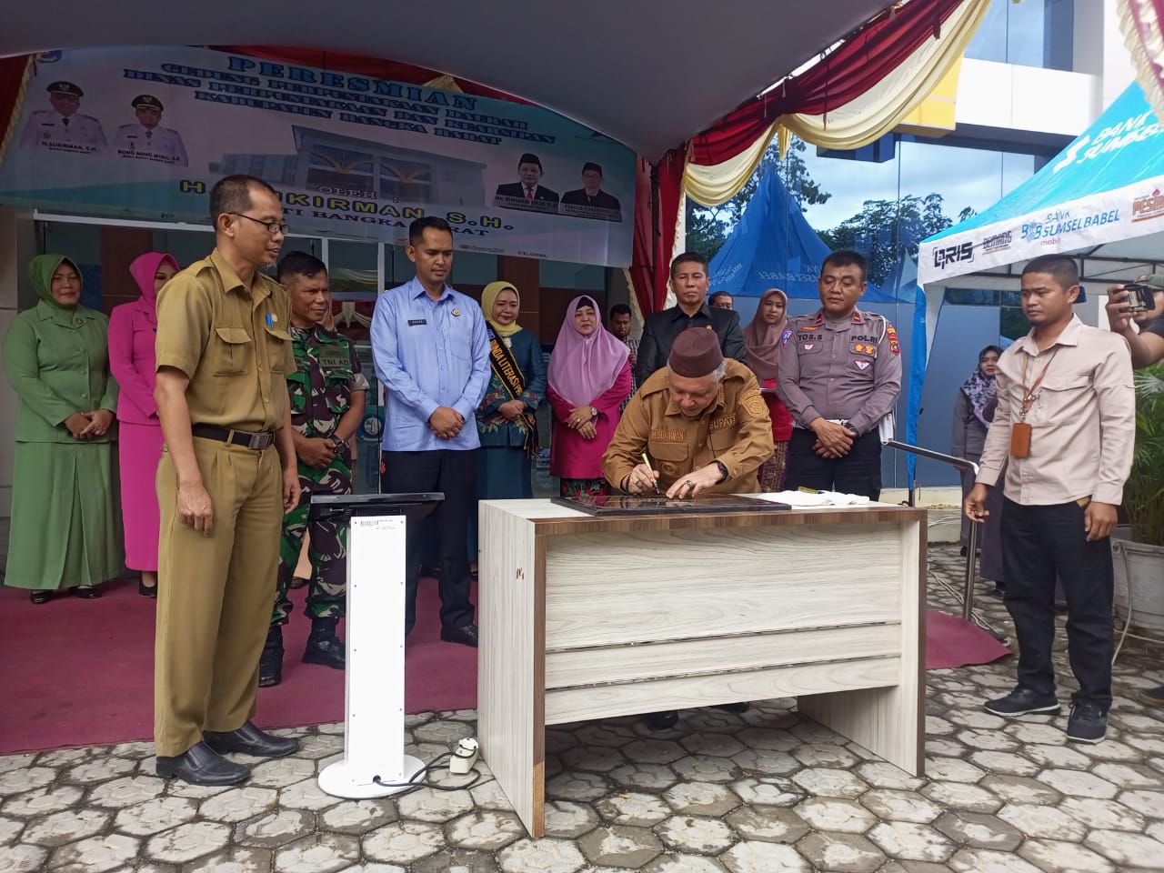 Bupati Bangka Barat H. Sukirman dalam sambutannya menyampaikan apresiasi kepada kepemimpinan pendahulunya yang telah berjasa hingga gedung Perpustakaan Daerah dapat terbangun.