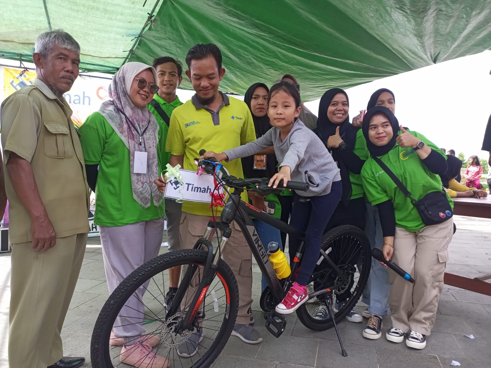 Selain membagikan ratusan bibit buah-buahan, PT Timah Tbk juga ikut berpartisipasi mendukung pesta rakyat dengan menyerahkan beragam hadiah dalam kegiatan ini.