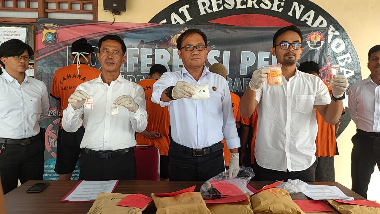 “Kesembilan orang ini ditangkap di tiga kecamatan, mereka merupakan warga berdomisili di Bangka Barat. Dari sembilan orang ini, satu merupakan residivis kasus yang sama dan satu orang paling banyak barang bukti,” ujar Kasat Narkoba.