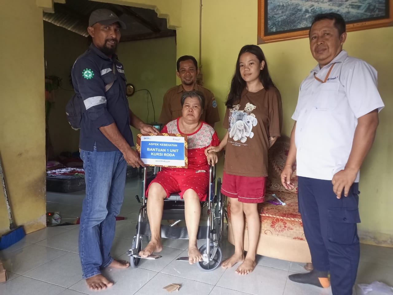 BANGKA BARAT – Maya (50) tak kuasa membendung air matanya saat menerima bantuan kursi roda dari PT Timah Tbk di kediamannya, Selasa (6/6/2023).