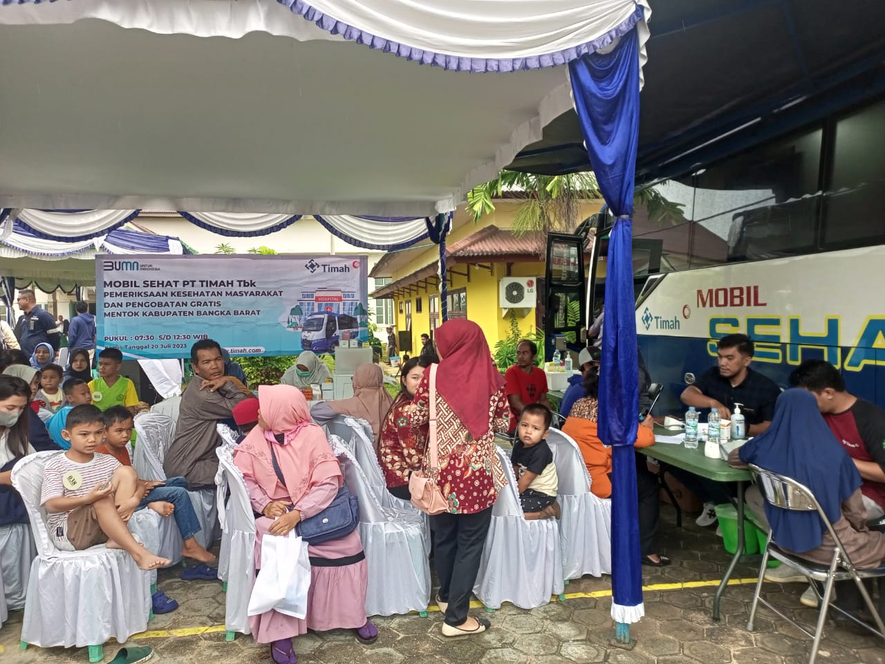 Kegiatan Mobil Sehat yang dilaksanakan di Gedung Serba Guna Kecamatan Mentok, pada Kamis (20/7/2023) bersamaan dengan Bulan Bakti PT Timah Tbk dalam rangka menyambut HUT ke-47 PT Timah Tbk.