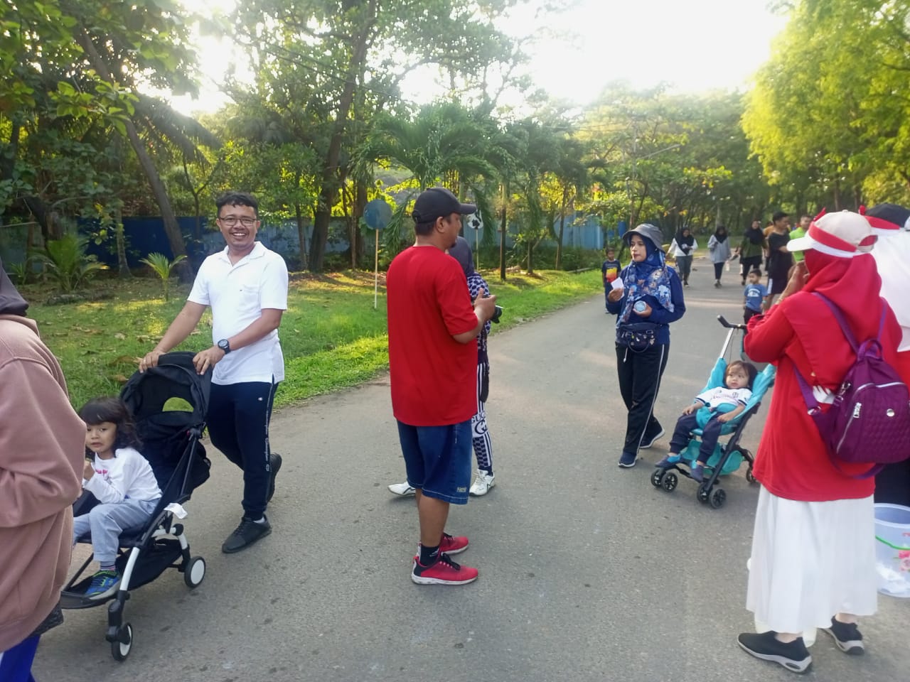 Para peserta jalan sehat mengelilingi Komplek Unit Metalurgi, Pantai Unmet hingga ke perkantoran unit metalurgi.
