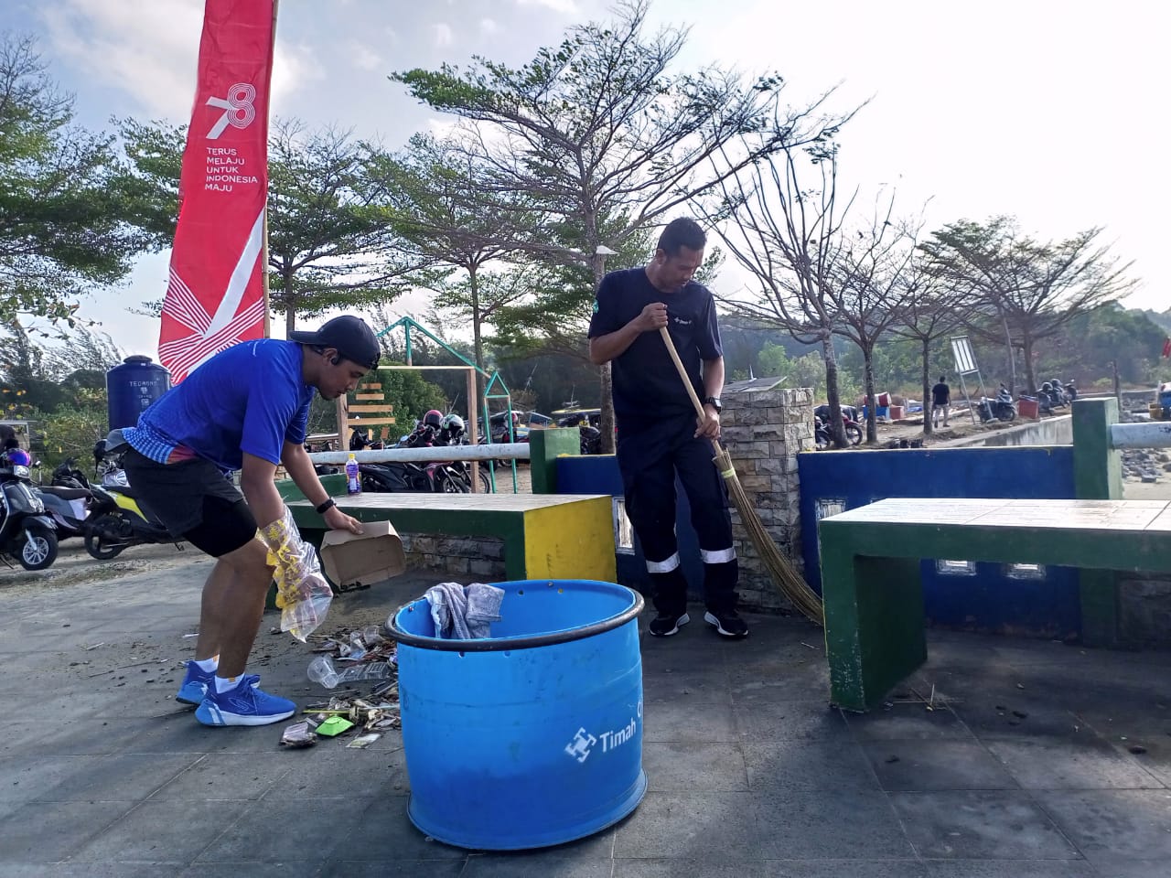 Ratusan orang yang mengikuti kegiatan ini tampak saling bekerja sama membersihkan kawasan ini, mempercantik kawasan ini dengan mengecat ulang fasilitas wisata masyarakat.