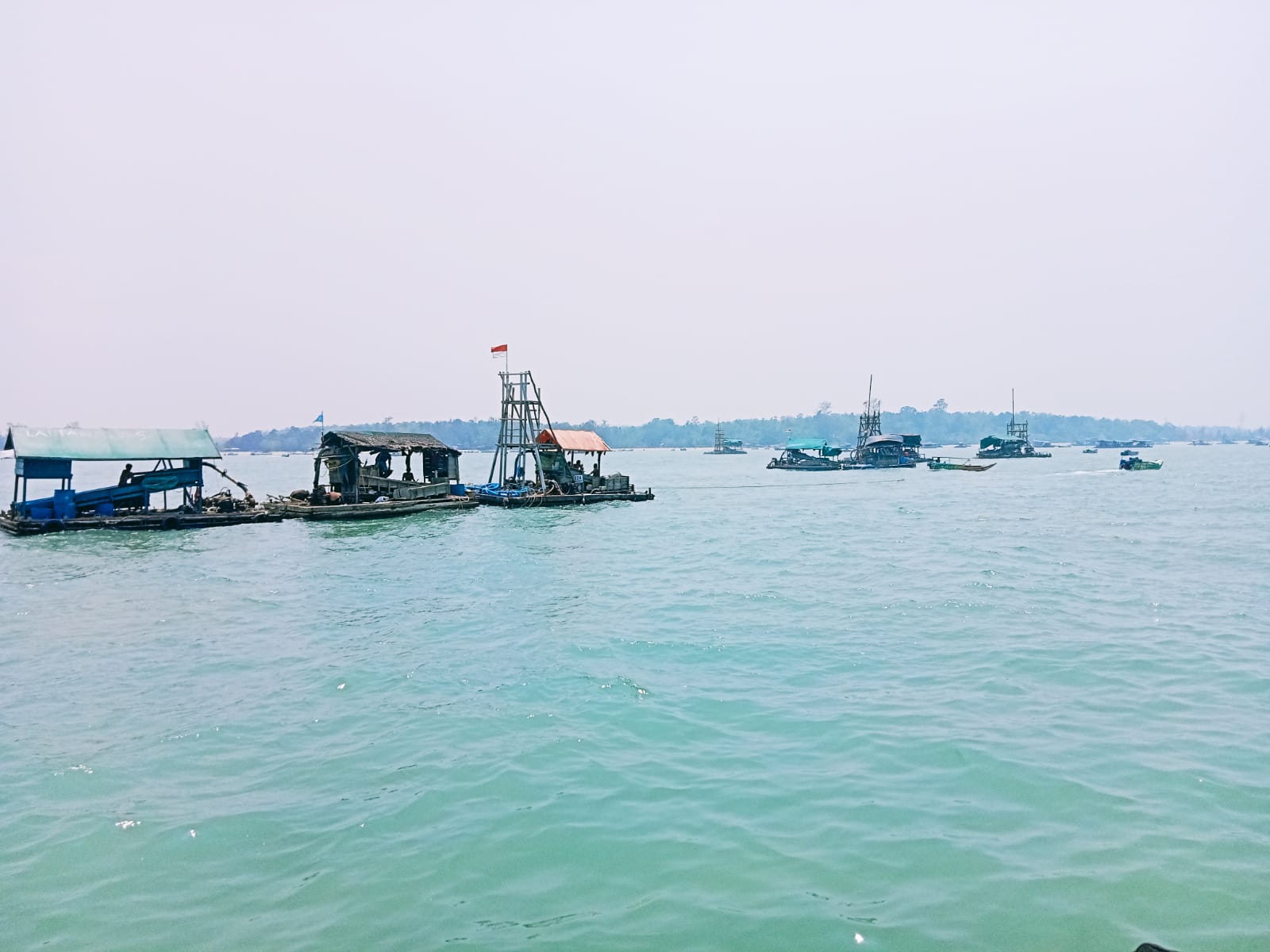 Diperkirakan ponton – ponton tersebut berjumlah sekitar 500 ponton yang posisinya berkumpul dalam kelompok-kelompok tersendiri.