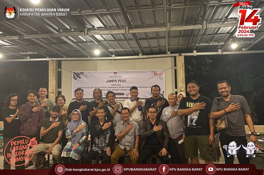 Koordinator Divisi Teknis Penyelenggara KPU Bangka Barat Kadir Jailani, saat Konferensi Pers di Cafe Katiga, Mentok, Jum’at (03/11/2023 ) malam, menyampaikan hasil Rapat Pleno tersebut kepada wartawan Bangka Barat.