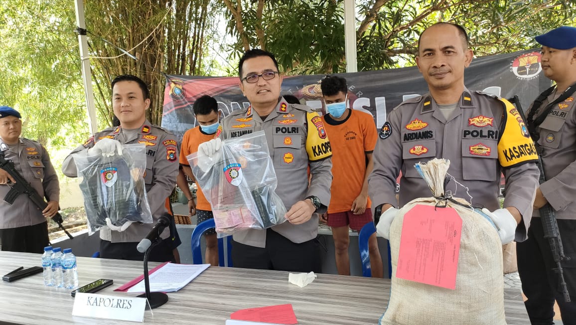 Kapolres Bangka Barat AKBP Ade Zamrah SIK pada kesempatan kali ini mengatakan, ”Para pelaku berjumlah 4 orang yang dimana masing-masing kejadian terjadi pada hari kamis (19/10/2023) dengan mengambil 5 (lima) karung pasir timah yang kemudian ditukar dengan 5 (lima) karung pasir biasa di KIP Shanko yang sedang beroperasi di perairan Belo Laut.