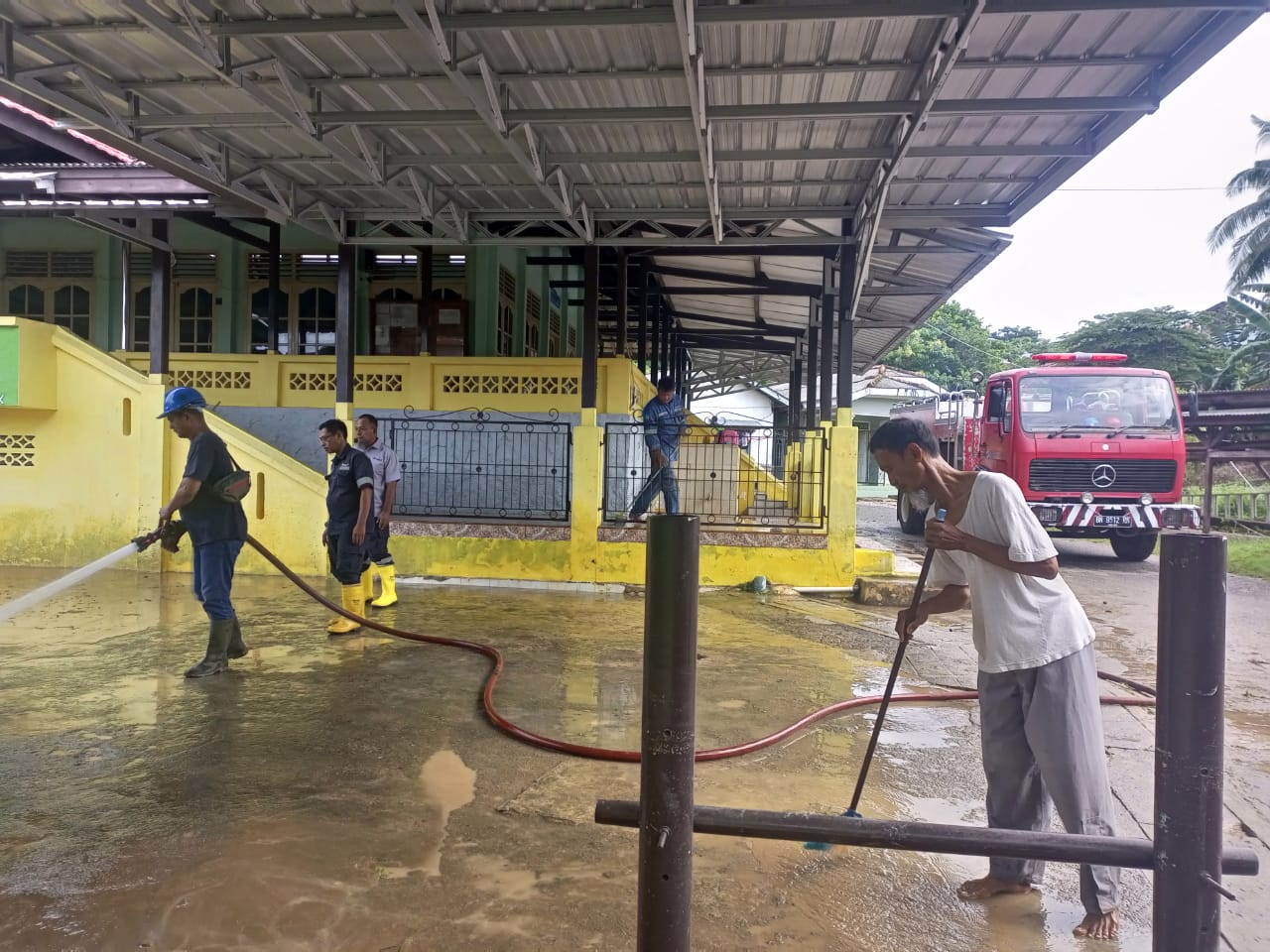 “Karena besok kita akan melaksanakan Salat Jumat, kami meminta bantuan PT Timah untuk membersihkan lumpur yang masuk ke masjid, rumah warga dan jalan yang sekarang licin akibat lumpur. Alhamdulillah PT Timah cepat tanggap, dan langsung menerjunkan Tim Tanggap Bencana dengan Mobil Damkar membersihkan lumpur Banjir,” katanya.