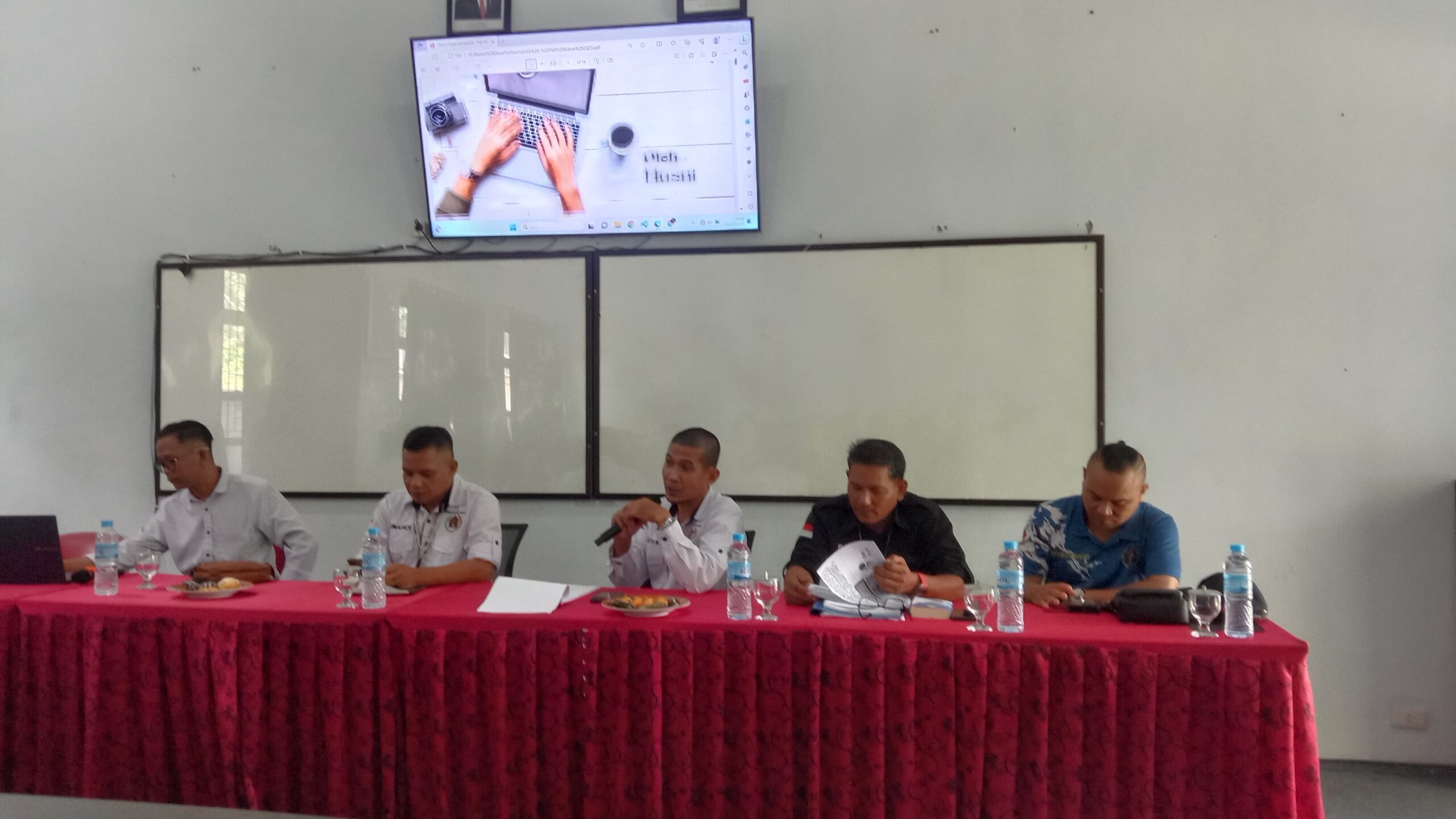 Ketua PWI Bangka Barat, Husni menyampaikan apresiasi atas dukungan SMKN 1 Parittiga dalam mengandeng PWI Bangka Barat dalam memberikan pelatihan pada kegiatan pelatihan jurnalistik.