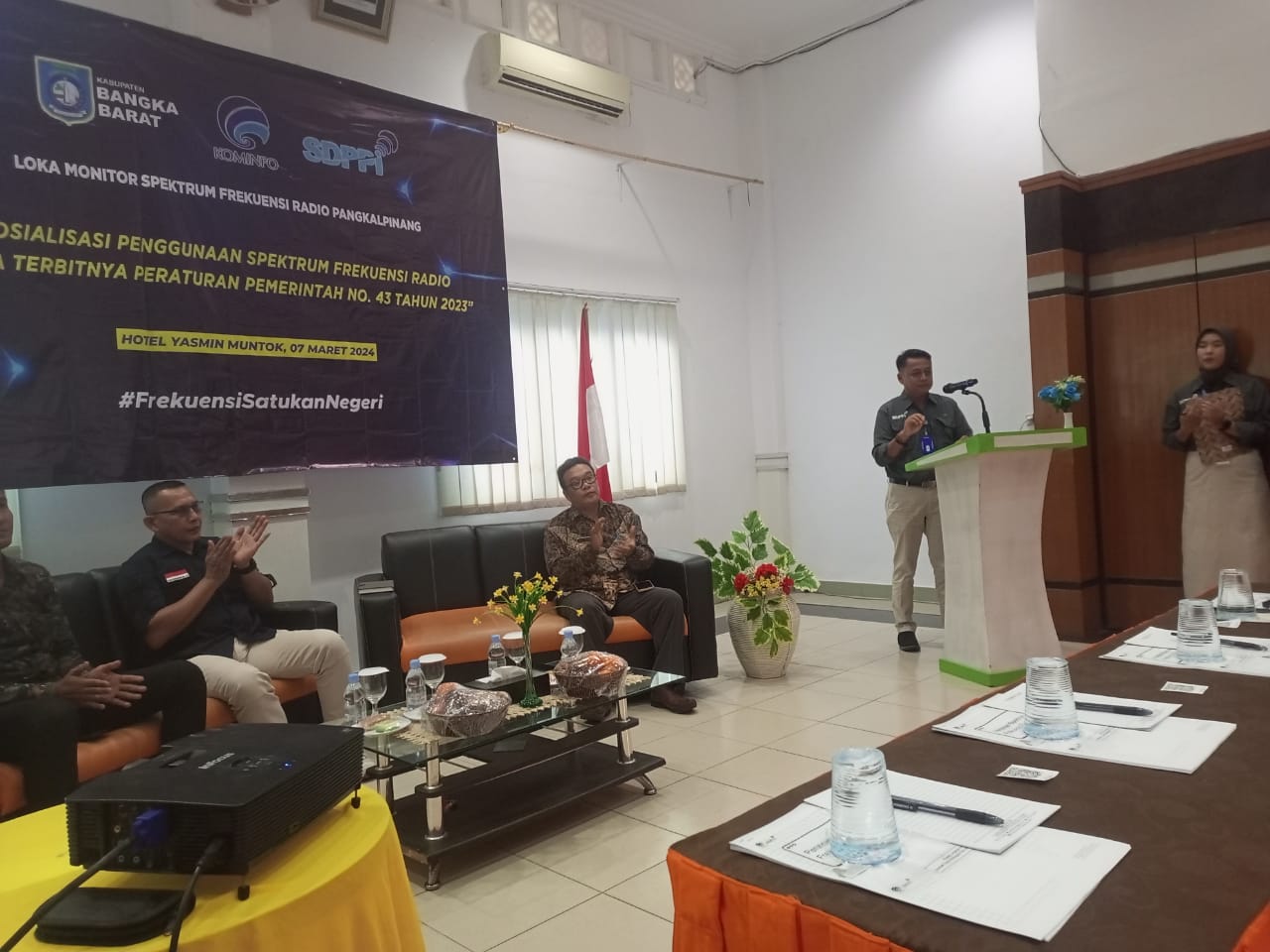 BANGKA BARAT – Loka Monitor Spektrum Frekuensi Radio Pangkalpinang, Dirjen Sumber Daya dan Perangkat Pos dan Informatika RI melaksanakan Sosialisasi “Penggunaan Spektrum Frekuensi Radio Pasca Terbitnya Peraturan Pemerintah No. 40 Tahun 2023. Kegiatan dihadiri oleh Lembaga Penyiaran dan Pengguna Spektrum Frekuensi Radio di Bangka Barat, dilaksanakan di Hotel Yasmin Star, Kamis (07/03/2024).