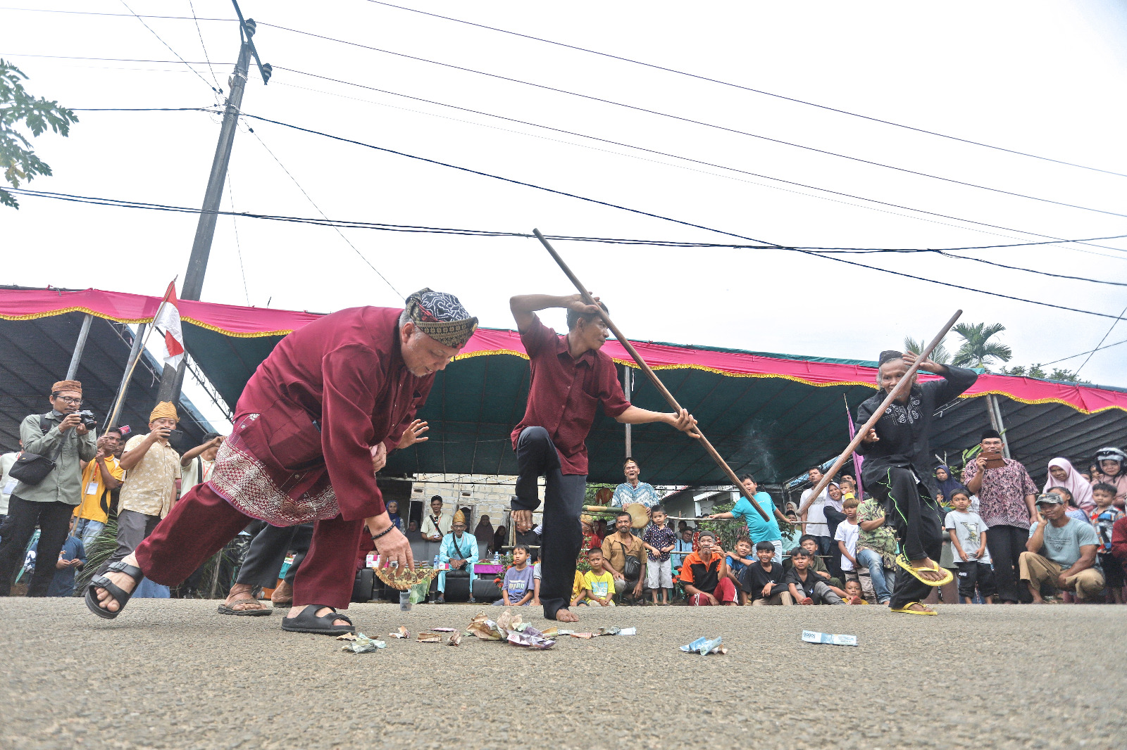 Sejak matahari terbit, warga telah berkumpul di jalan utama dusun setempat dan bersiap untuk melakukan arak-arakan. Para remaja yang telah dikhitan diletakkan di atas tandu dan dibawa berkeliling dusun hingga berakhir di panggung utama tempat acara puncak berlangsung.