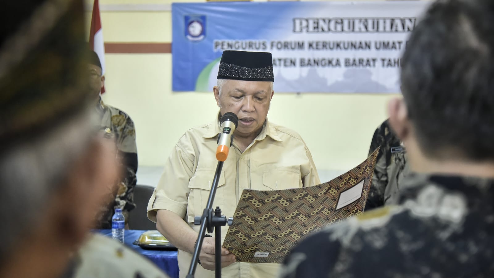 PILARRADIO.COM, Mentok – Jajaran Pengurus FKUB (Forum Kerukunan Umat Beragama) Kabupaten Bangka Barat periode 2024-2029 dikukuhkan oleh Bupati Bangka Barat H. Sukirman.