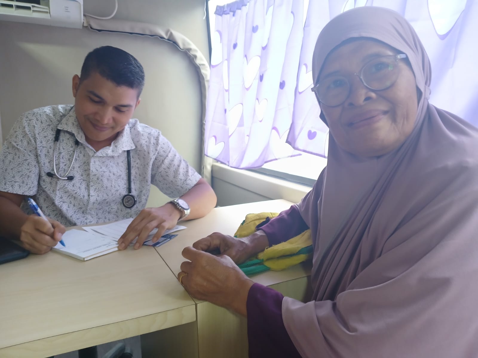“Terima kasih sudah diperiksa kesehatan disini dan dikasih obat, alhamdulillah diberi kue juga, sangat terasa berbeda dari berobat ditempat lain,” kata Sarwati.