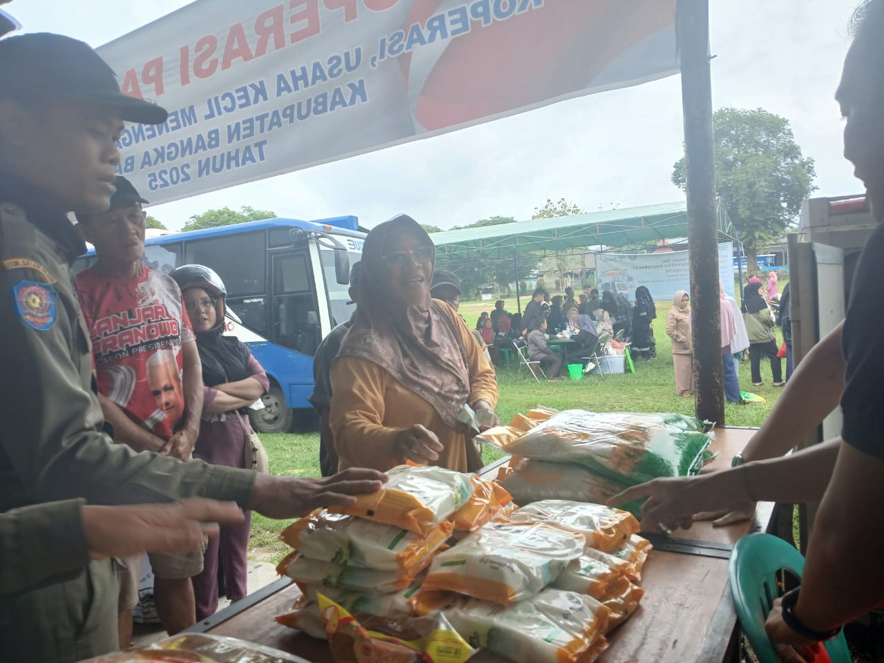 Operasi pasar yang menyediakan beberapa bahan pokok seperti beras, minyak makan, gula pasir dan gandum disambut antusias warga Mentok. Tidak sampai satu jam, sembako ludes dibeli masyarakat yang datang.