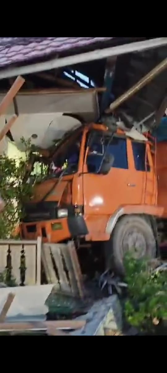 Tidak ada korban jiwa akibat kecelakan itu, hanya saja rumah warga yang ditabrak truk menderita kerugian materil akibat truk menabrak sisi depan rumahnya. Pemilik rumah, Erik mengungkapkan peristiwa itu terjadi sekitar pukul 18.30 WIB tepat sebelum dirinya melaksanakan shalat.