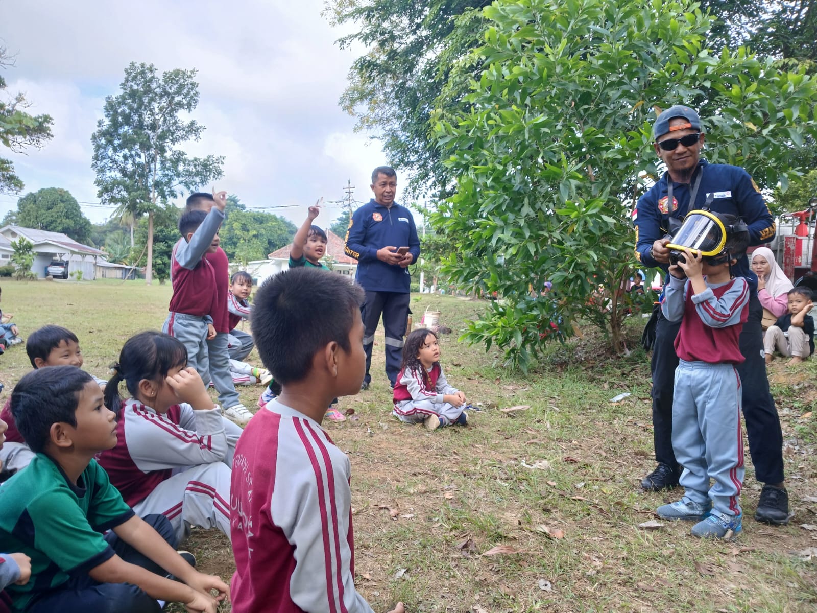 Kali ini, Tim Pemadam Kebakaran (Damkar) Divisi Processing dan Refinery PT Timah mengedukasi para pelajar TK Stannia Mentok tentang api, air dan udara di Lapangan Sepakbola Division Processing and Rifenery PT Timah di Mentok, Kamis (6/2/2025).