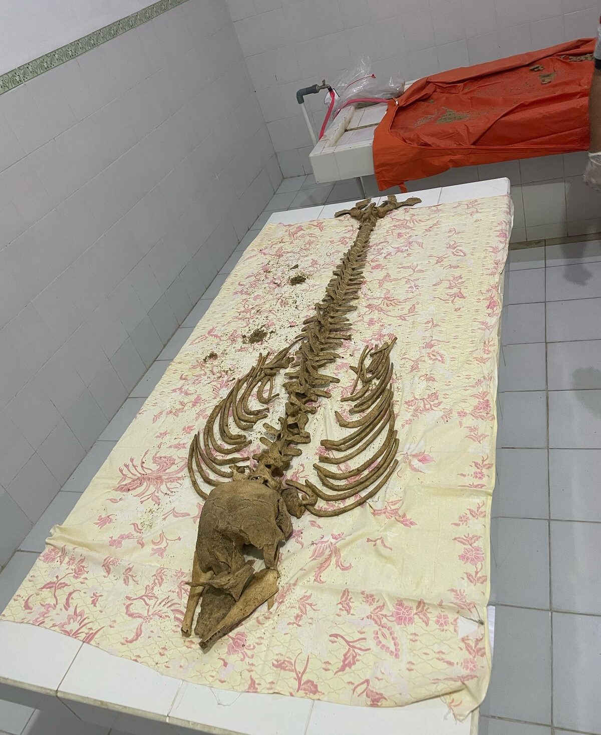 “Karena yang bisa memberikan gambaran apakah itu betul dari struktur kerangka dari hewan terutama buaya. Kemungkinan buaya, baik bentuk tengkorak kepalanya, kemudian ruas-ruas tulang cukup panjang. Sama-sama kita saksikan sangat jauh dari proporsi tubuh manusia,” katanya.