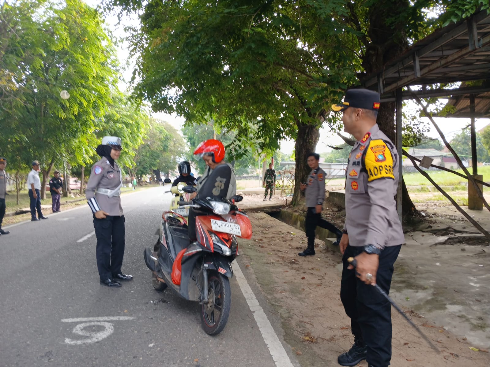 Razia digelar di Simpang Tugu Sukarno teruntuk sejumlah kendaraan baik roda dua dan empat yang melintas. Kendaraan yang melanggar aturan berkendara seperti tidak memakai helm, tidak membawa kelengkapan surat kendaraan serta pelanggaran teknis lainnya dikenakan Sanksi Tilang.