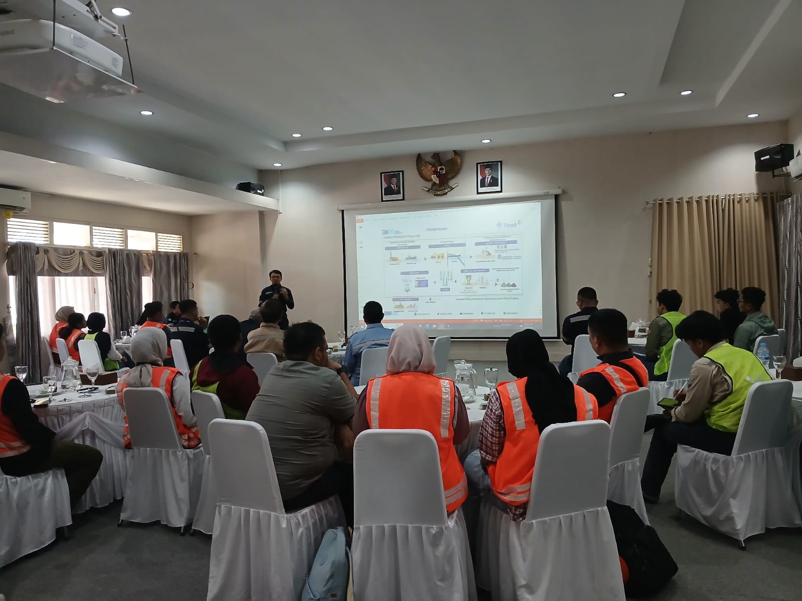 Rombongan diterima langsung oleh Sub Division Head Processing and Refinery, Kopdi Saragih yang dalam kesempatan ini memaparkan proses pengolahan dan peleburan timah yang dilakukan PT. Timah.
