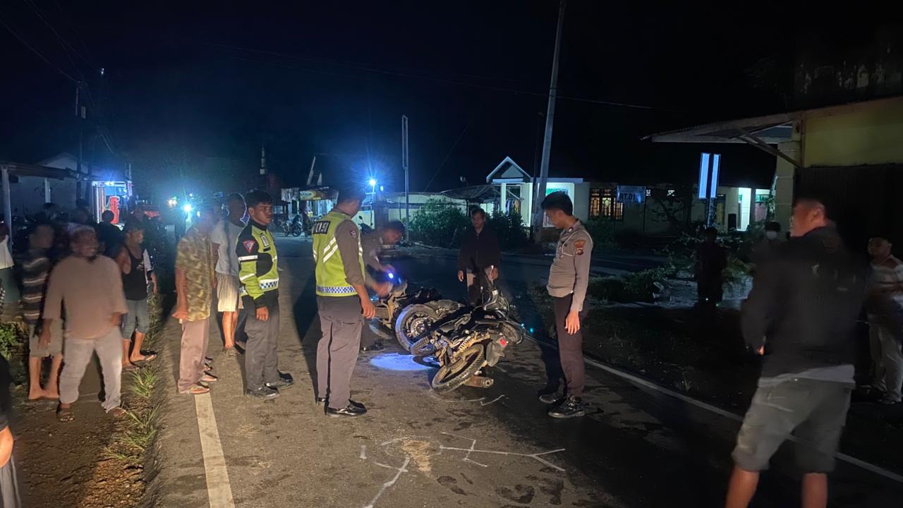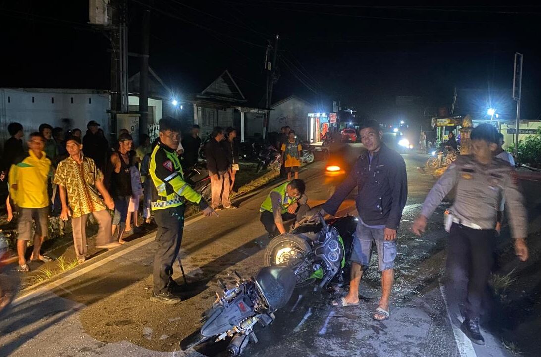 PILARRADIO.COM, TEMPILANG – Kecelakaan maut terjadi di Jalan Raya Simpang Tiga Tugu Sangku Desa Sangku Kecamatan Tempilang Kabupaten Bangka Barat. Kecelakaan lalu lintas tersebut terjadi pada Jumat, 12 Desember 2025 sekitar pukul 20.15 WIB melibatkan sepeda motor Yamaha Jupiter Z warna hijau tanpa nomor polisi dengan sepeda motor Yamaha Aerox warna hitam. Akibat peristiwa tersebut, pengendara Jupiter Z meninggal dunia di lokasi kejadian, sementara pihak lainnya mengalami luka ringan.