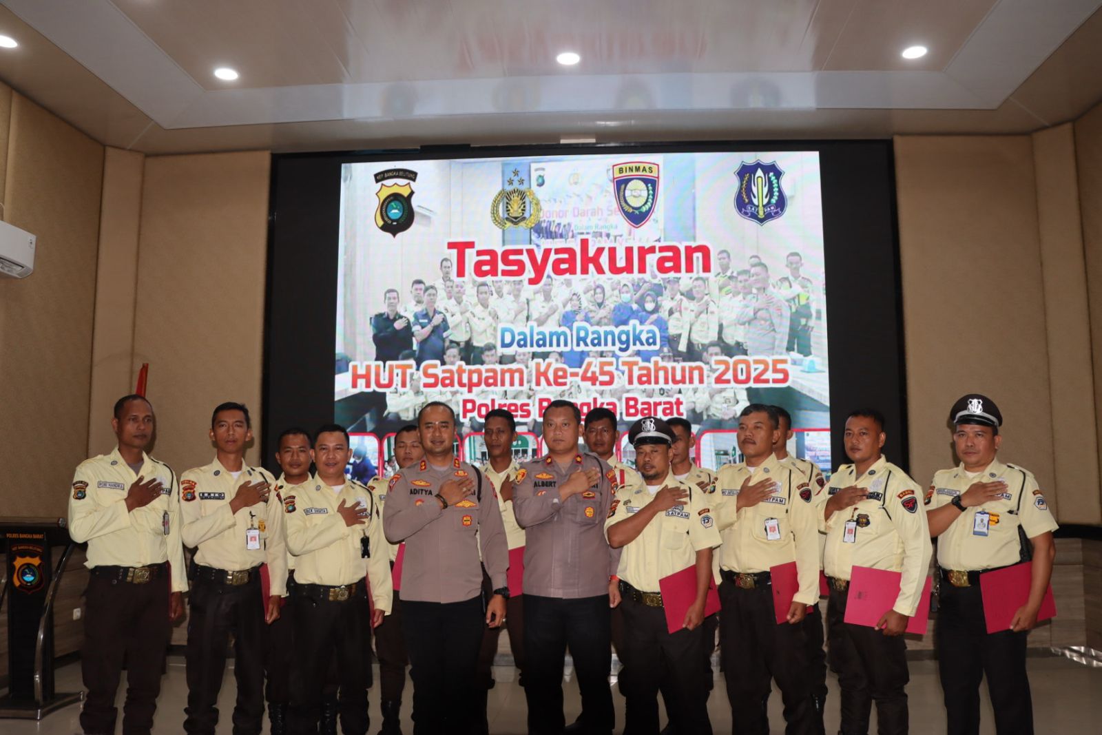 Kapolres Bangka Barat AKBP Pradana Aditya Nugraha, menyerahkan langsung penghargaan ini kepada 14 Satpam berprestasi se-Kabupaten Bangka Barat dalam kegiatan Tasyakuran HUT Satpam ke-45 yang berlangsung di Ruang Catur Prasetya Polres Bangka Barat, Kamis (8/1/2025).