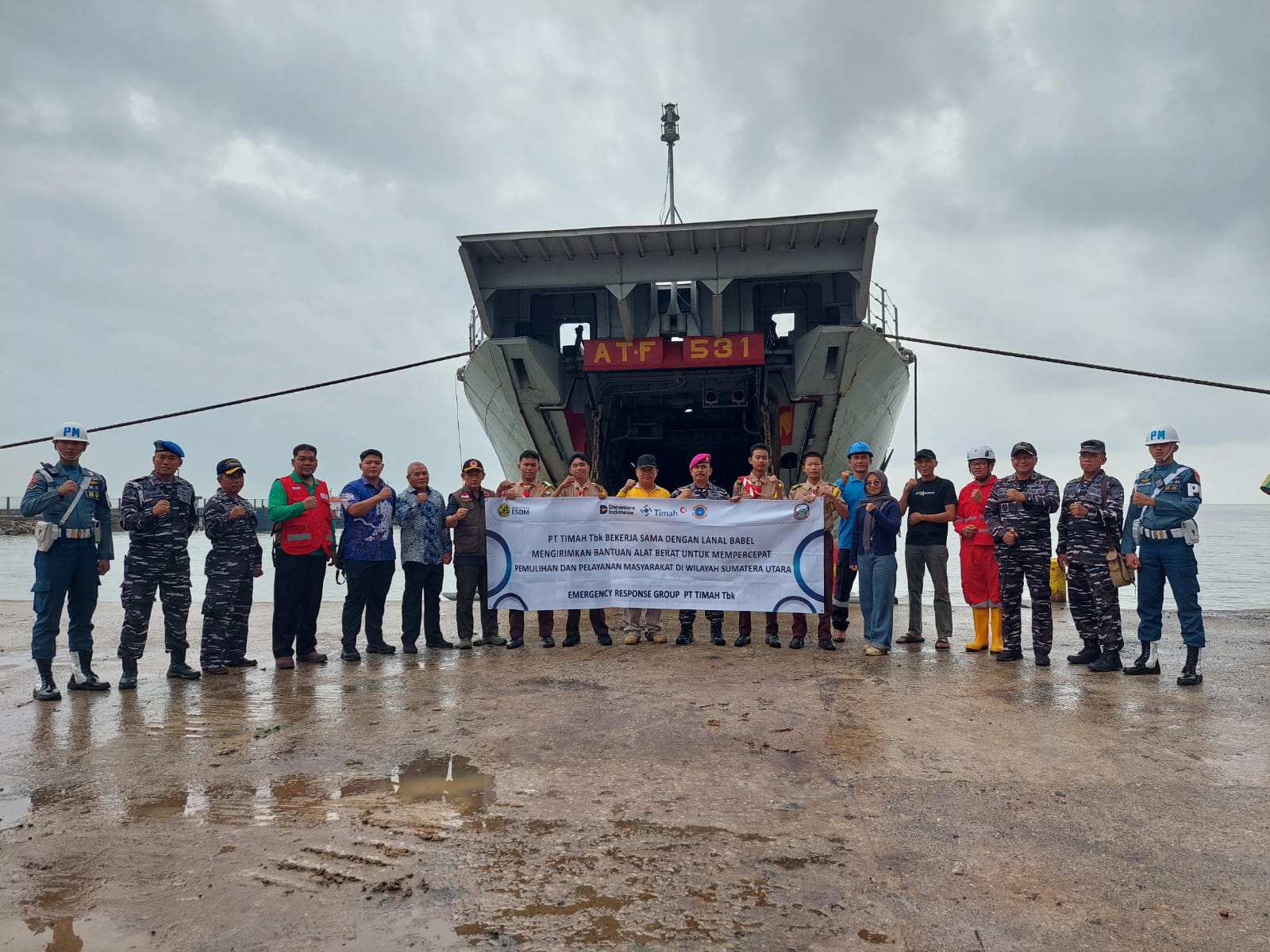 PILARRADIO.COM, MENTOK – PT TIMAH Tbk bekerja sama dengan Pangkalan TNI Angkatan Laut (Lanal) Bangka Belitung mengirimkan bantuan lima unit alat berat jenis excavator untuk mempercepat pemulihan dan pelayanan untuk masyarakat terdampak bencana banjir dan tanah longsor di Aceh, Sumatera Utara dan Sumatera Barat.